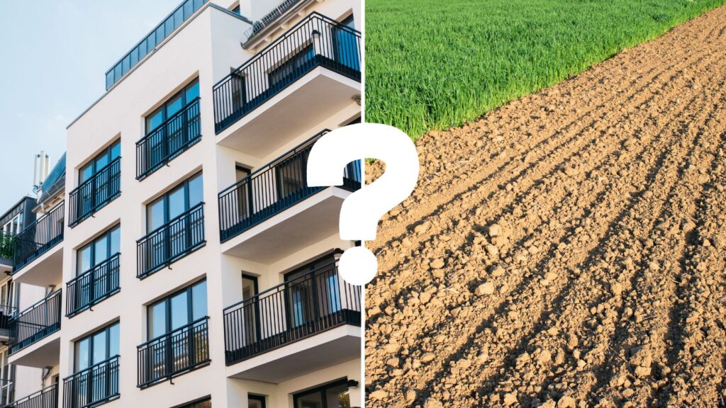 Rozdíly přicházejí ve chvíli koupě. Novostavby bytů podléhají snížené DPH (aktuálně 12 %), zatímco koupě zemědělské půdy je většinou od DPH osvobozena. A protože od roku 2020 už neplatíme daň z nabytí nemovitosti, odpadají i jednorázové vstupní poplatky.